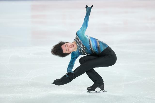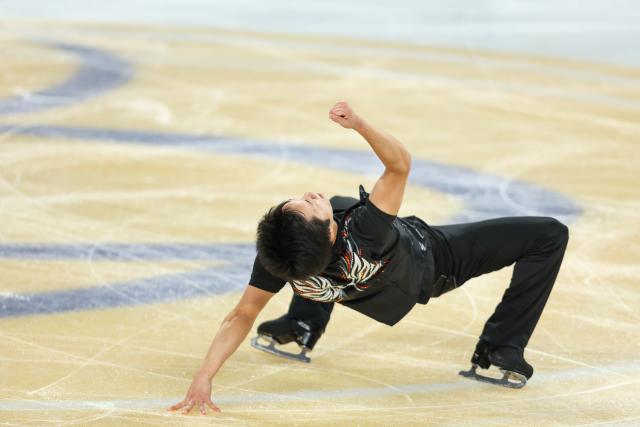 (251024) -- CHONGQING, Oct. 24, 2025 (Xinhua) -- Cha Junhwan of South Korea performs during the men's short program at the Cup of China ISU Grand Prix of Figure Skating 2025 in southwest China's Chongqing Municipality, Oct. 24, 2025. (Xinhua/Huang Wei)