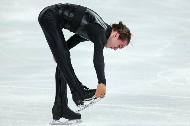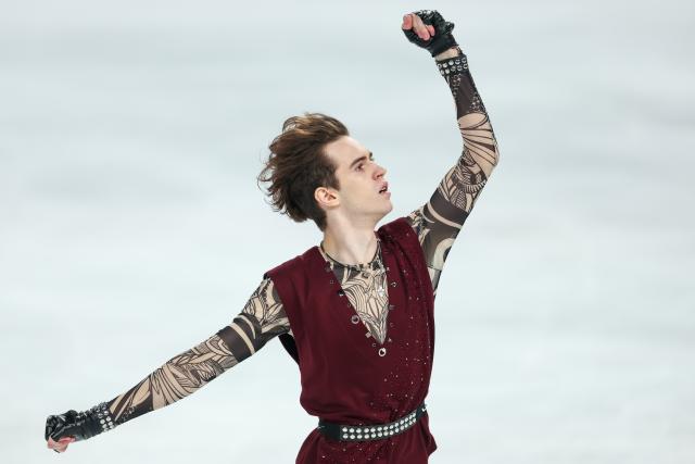(251024) -- CHONGQING, Oct. 24, 2025 (Xinhua) -- Mikhail Shaidorov of Kazakhstan performs during the men's short program at the Cup of China ISU Grand Prix of Figure Skating 2025 in southwest China's Chongqing Municipality, Oct. 24, 2025. (Xinhua/Huang Wei)